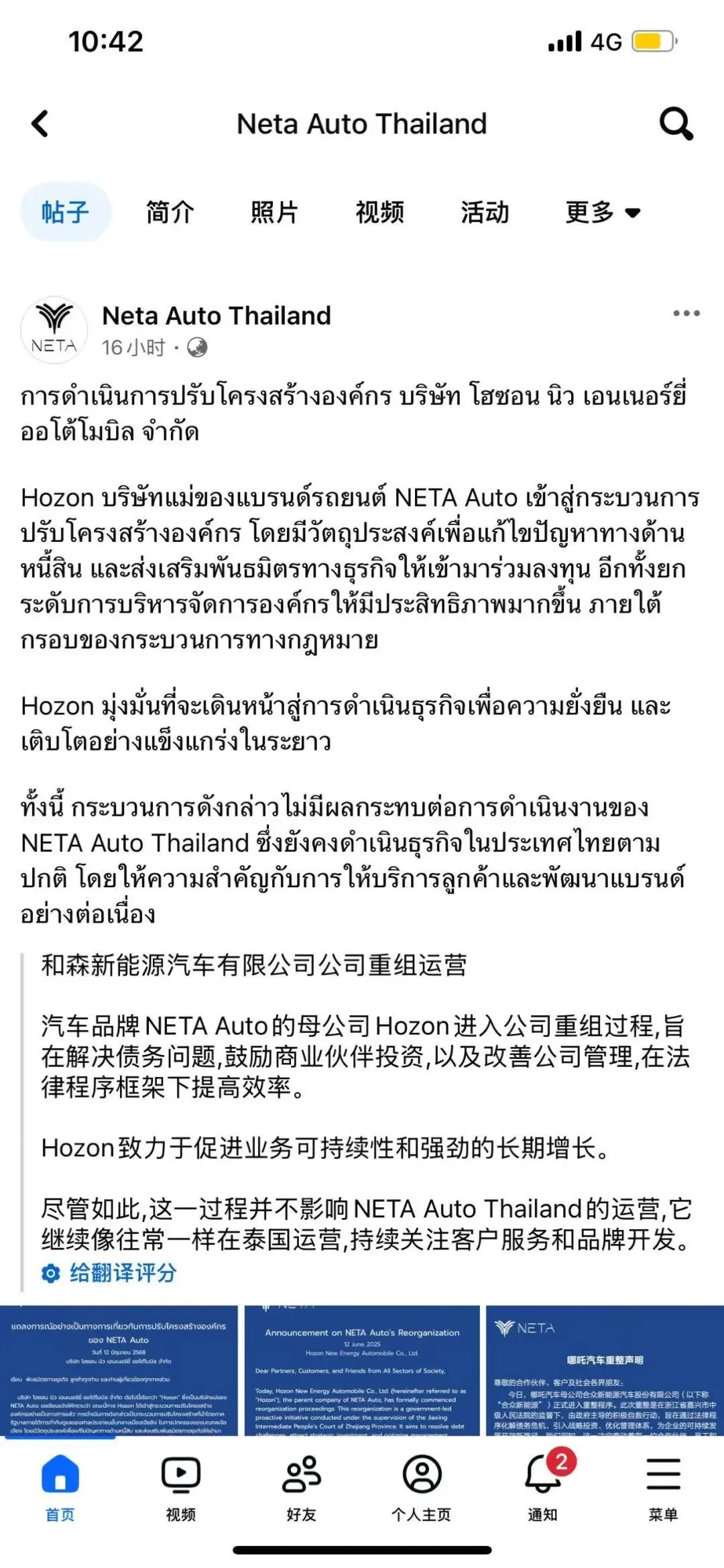 虽然哪吒在国内的官方账号并没有发布"哪吒汽车重整声明",然而哪吒汽车在海外账号发布了中英泰三语声明全民配资,其中中文声明与员工晒出的声明内容一致。从该账户名称和历史消息都是泰文能够看出,该账户主要是面向泰国用户。而其他海外官方账号,并没有这个声明,网友猜测,该账户发布的内容可能主要是为了安抚泰国用户。